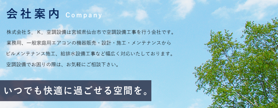 株式会社S.K.空調設備は家庭用、業務用空調設備の取り付け工事など行っております。お気軽にお問い合わせください
